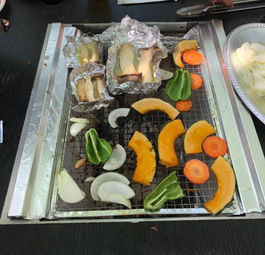 野菜に関しては、嫌いな野菜を頑張って食べている子もいれば、なかなか食べられない子もいました。好き嫌いせず、野菜もたくさん食べましょう。デザートにBIGマシュマロとサツマイモをいただき、BBQは終了!